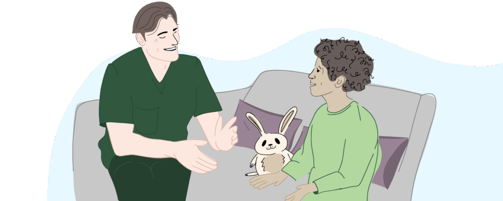 Det innebærer å ha en samtale med pasienten, dersom hen har mindreårige barn, om barnets behov og behov for oppfølging. I samtalen kan barnet og andre omsorgspersoner delta hvis pasienten ønsker det. Du kan gi informasjon innenfor reglene om taushetsplikt.